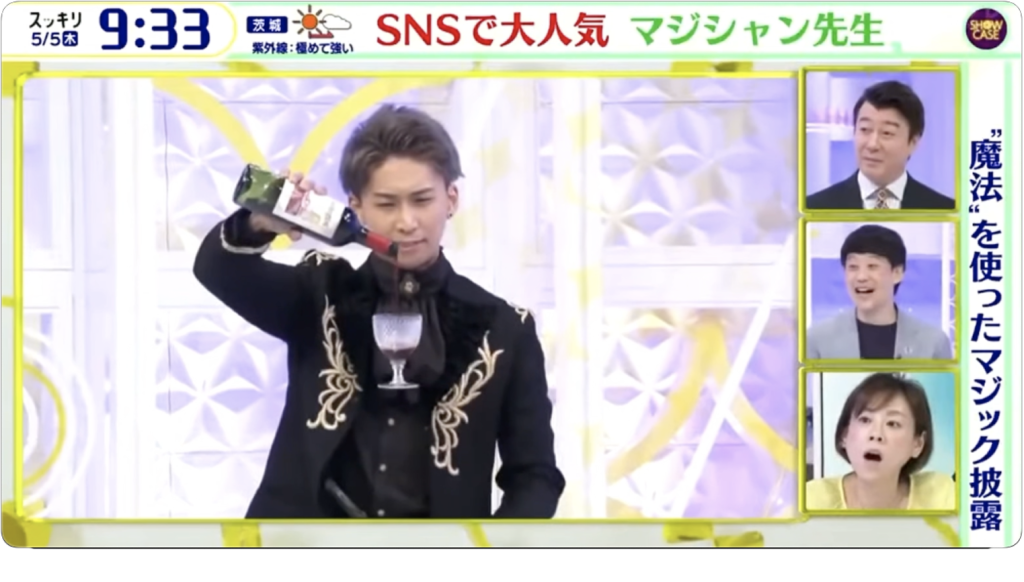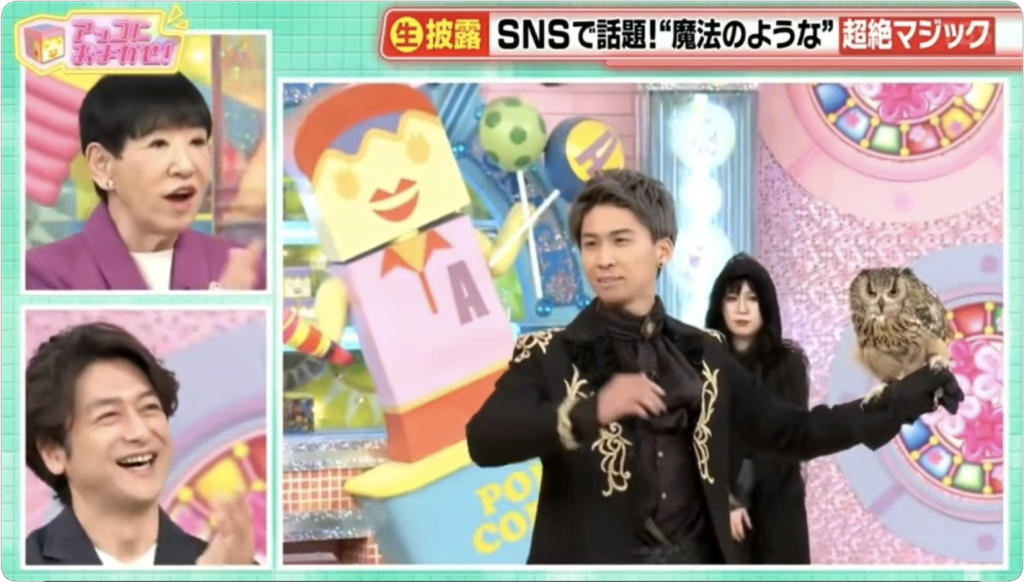 マジックを使ったおもしろ動画をSNSにアップしており、月間再生数は1億回。